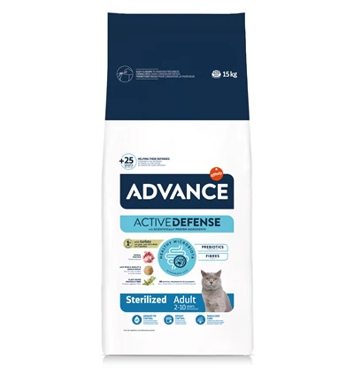 Advance Cat Sterilzed Turkey is compleet voer voor gesteriliseerde volwassen katten, op basis van kalkoen, voor een ideale urine-PH. Dit voer van Advance helpt jouw kat gezond te houden na een castratie of sterilisatie. Zeer effectief zijn de mineralen en ingrediënten die zorgen voor een optimale PH van de urine, wat blaasproblemen helpt voorkomen. Omdat gesteriliseerde en gecastreerde katten ook vaak last krijgen van overgewicht, helpt het voer het gewicht te controleren en zorgt het voor een goede darmwerking, door de makkelijk verteerbare kalkoen. Omega 3 en 6 zorgen voor een gezonde huid en vacht en speciale mineralen helpen tandplak te voorkomen.