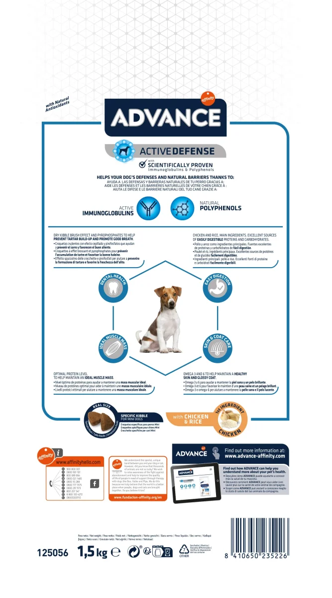 De Advance Mini Adult 1,5 kg is een compleet, gemakkelijk verteerbaar hondenvoer speciaal gemaakt voor kleine hondenrassen tot 10 kg.