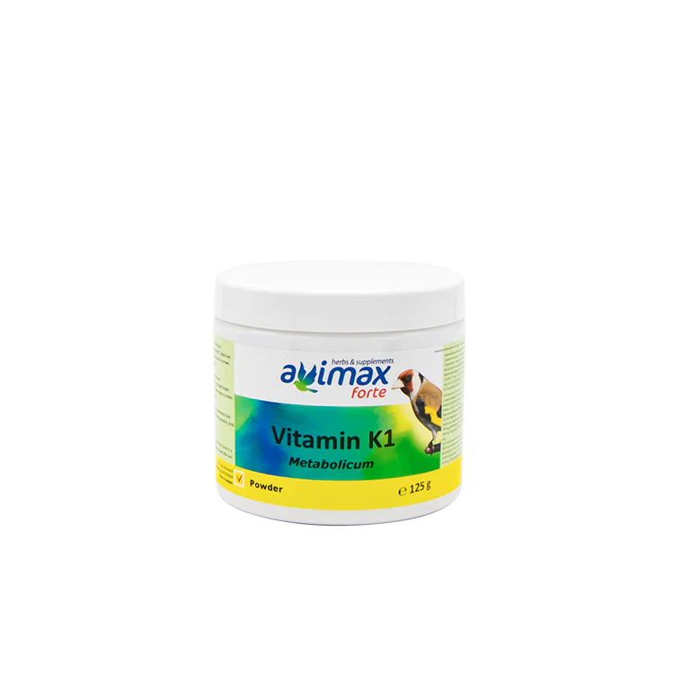 AviMax Forte Vitamine K1 optimaliseert het metabolisme, vermindert schimmelinfecties, verbetert de celgroei en de algemene conditie. Vitamine K1 kan leverbeschadiging herstellen. Daarnaast pakt Vitamine K1 de bloedarmoede aan en krijgen verenplukkers terug veren.