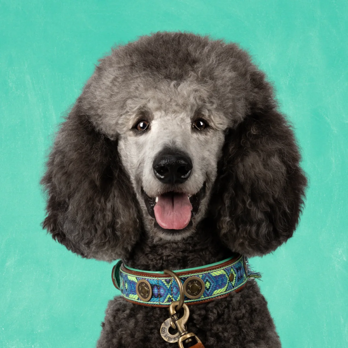De Boho Juan halsband heeft een uitgesproken bohemian stijl en geeft elke hond meteen een avontuurlijke look. Deze handgemaakte halsband in maat L (halsomvang 40-47 cm, breedte 4 cm) is gemaakt van bruin buffelleer met een turquoise leren voering aan de binnenkant. Over het bruine leer loopt een decoratieve blauwe boho band die de halsband een speelse, bohemian uitstraling geeft. De combinatie van bruin en turquoise leer met de opvallende blauwe boho band maakt deze halsband een echte eyecatcher. Perfect voor grote honden die opvallen met een vrolijke, bohemian look.