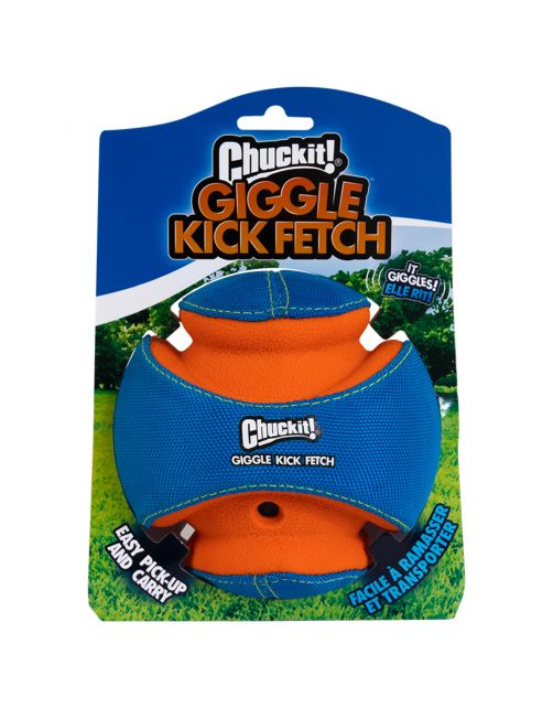 De Chuckit Giggle Kick Fetch 14 cm is een bal met humor! Hij maakt bij het rollen een lachend geluid, een “Giggle”. Dat maakt deze bal een zeer interessant speeltje voor honden die nieuwsgierig zijn aangelegd en is goed te gebruiken voor honden met een slecht zicht. De aparte vorm geeft de hond de mogelijkheid om dit speeltje makkelijk te dragen. Het materiaal is een combinatie van rubber er stevig canvas, waardoor er langdurig mee gespeeld kan blijven worden.