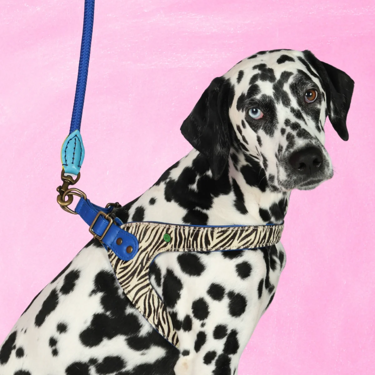 Geef je hond een stijlvolle upgrade met ons ‘Dandy’ instaptuigje, met een gedurfde zebraprint die zeker de aandacht trekt. Gemaakt van hoogwaardig leer en gevoerd met een zachte stof, biedt dit tuigje niet alleen een luxe uitstraling maar ook optimaal draagcomfort. Bij Dog with a Mission combineren we unieke designs met een hart voor verandering: elk tuigje draagt bij aan onze missie om een positieve impact te maken. Combineer het met onze Dandy riem en dandy poepzakje voor de perfecte look en laat zien dat jouw hond niet alleen stijlvol is, maar ook bijdraagt aan een betere wereld.