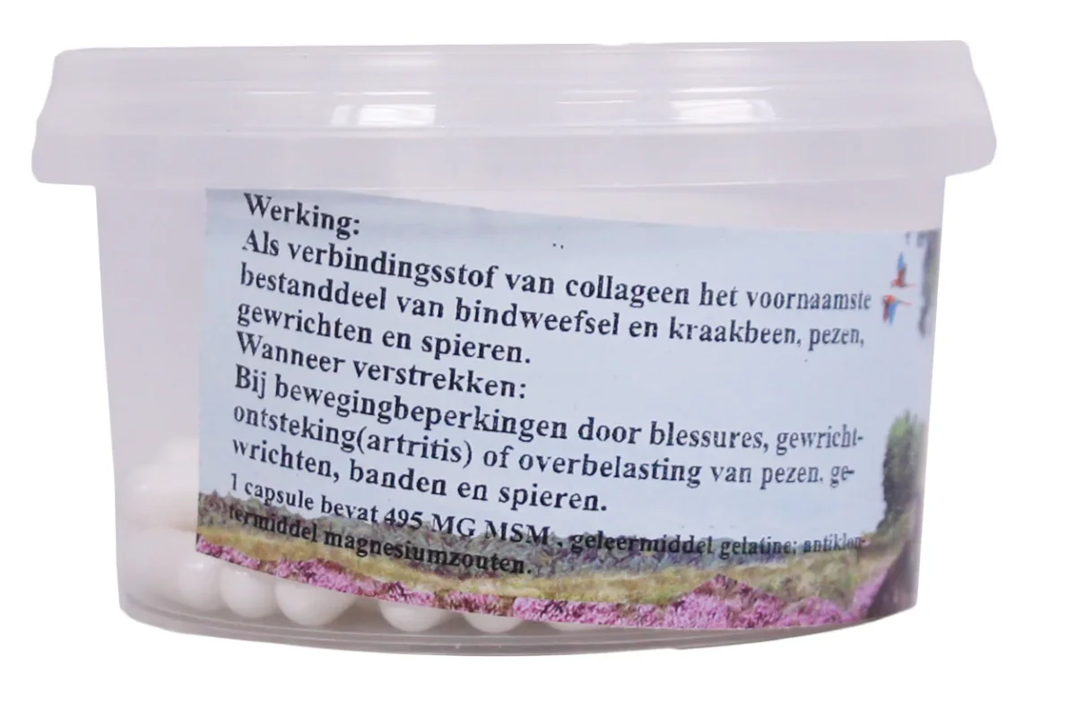 Samenstelling: MSM, geleermiddel gelatine, antiklontermiddel, magnesiumzouten