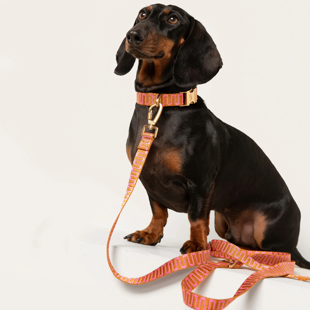 Laat je hond hip en kleurrijk voor de dag komen met de hondenhalsband van DOGGUO. De halsband van DOGGUO heeft een kleurrijke retro print in de kleur roest/roze. We raden aan om alleen met de hand, de halsband te wassen en niet te strijken of drogen. Zo houd je de halsband retro wave roest/roze van DOGGUO mooi.