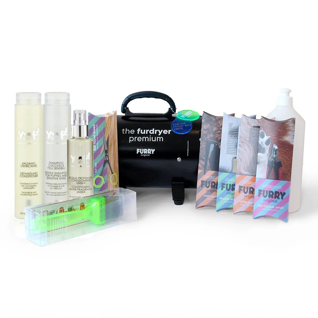 Mag jij binnenkort een pup verwelkomen in je gezin? Hoe leuk is dat! Wij hebben een pakket samen gesteld met de belangrijkste benodigdheden voor de vachtverzorging van jouw puppy. De benodigdheden zijn echte essentiels voor het eerste levensjaar van jouw puppy. Zo zit een heerlijke milde en verzorgende shampoo, conditioner en vachtspray in het pakket waarmee je jouw pup heerlijk kan wassen. De dubbelzijdige kam en kam met rolpennen zijn ideaal om tijdens de eerste maanden door de vacht heen te halen. Zo raakt de pup al een beetje gewend aan de langere trim en borstel momenten die later gaan volgen. De Activet borstel is pas van toepassing wanneer de pup in de vachtwissel komt, dit gebeurd rond de 7/ 8 maanden. Je merkt dit vanzelf. De vacht wordt dikker en er komen meer klitjes. Voor de hardnekkige klitjes is de matt splitter een uitkomst!