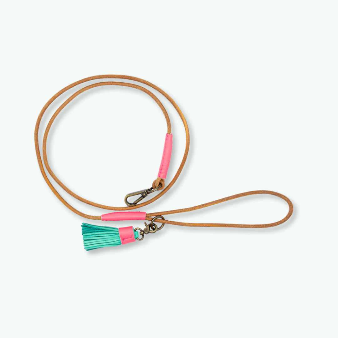 Compleet met DWAM style details is deze riem uitgerust met het authentieke turquoise kwastje en voorzien van roze leren details. De lengte is 1,35M en perfect voor honden tot 4kg.