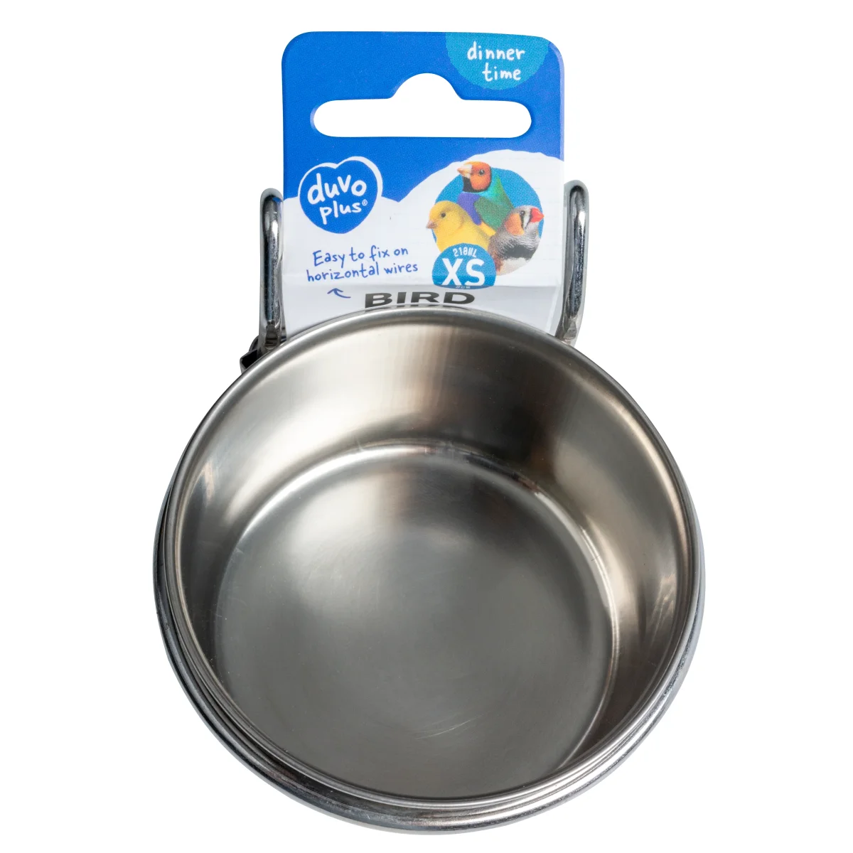 De Duvo Plus coop cup inox met haak is een duurzame voer- of drinkbak van roestvrij staal. Dankzij de stevige haakjes bevestig je de schaal eenvoudig aan de tralies van de vogelkooi.