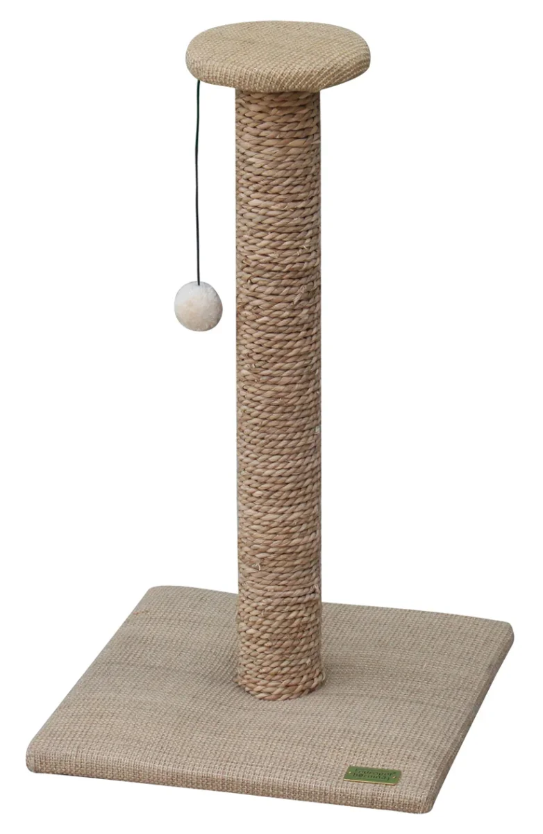 Krabpaal van waterhyacint bladeren, zacht en scheurvast, gelijmd natuursisal. Ligvlakken van pluche, ten dele afneembaar, wasbaar op 30°C.