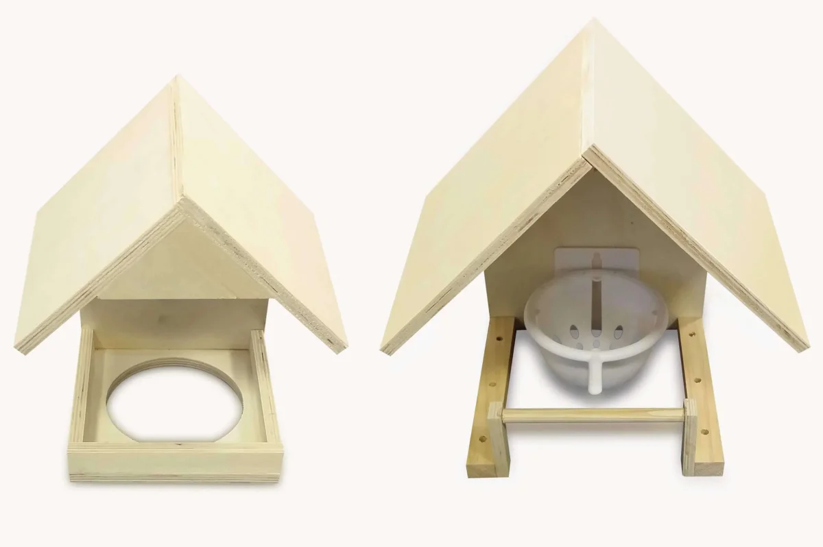 De Fauna houten nestkapel biedt een perfecte plek voor wildzang. Door de voorgeboorde gaatjes in de poten heeft de nestkast ook de mogelijkheid om bladeren of planten te steken, waardoor de vogels het een veilig en beschut plekje vinden.