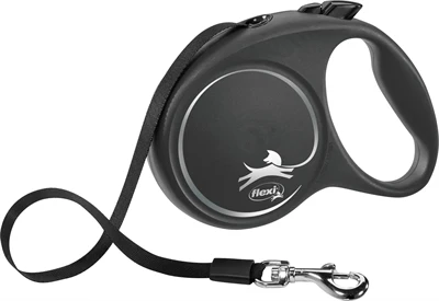 De Flexi Rollijn Black Design Tape Zwart S 5 meter is een handige, stijlvolle looplijn met band op rolmechanisme voor honden tot 15 kg. Deze nieuwe, zwarte uitvoering is stoer met een schattig tintje! De behuizing van de Black Design Flexi is zwart, met een zilver Flexi-logo en de afbeelding van een hond. De lijn bestaat uit een stevige platte band met musketonhaak op rolmechanisme, waardoor de hond meer ruimte heeft om te lopen. Met de knop bovenop kun je de lijn tijdelijk of permanent op een bepaalde lengte blokkeren. Een stijlvolle rollijn van de bekende Flexi-kwaliteit die de hond lekker veel bewegingsruimte biedt!