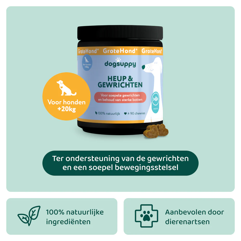 🎁 Nu met GRATIS verzending en een 60 dagen geld-terug-garantie. Bestel Heup & Gewrichten vandaag nog en geef je hond de extra ondersteuning voor meer dagelijks comfort.