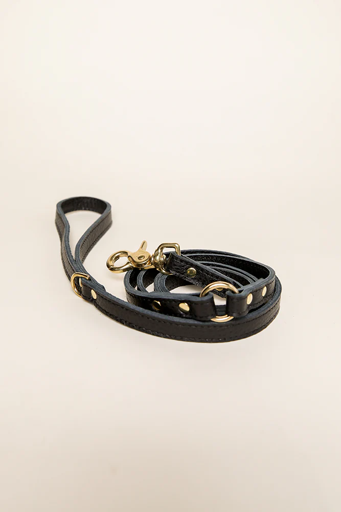 De hondenlijn Royal Black is gemaakt van echt kwaliteitsleer. De gouden details zorgen ervoor dat deze hondenlijn een echte eye-catcher is voor jouw Doodle.