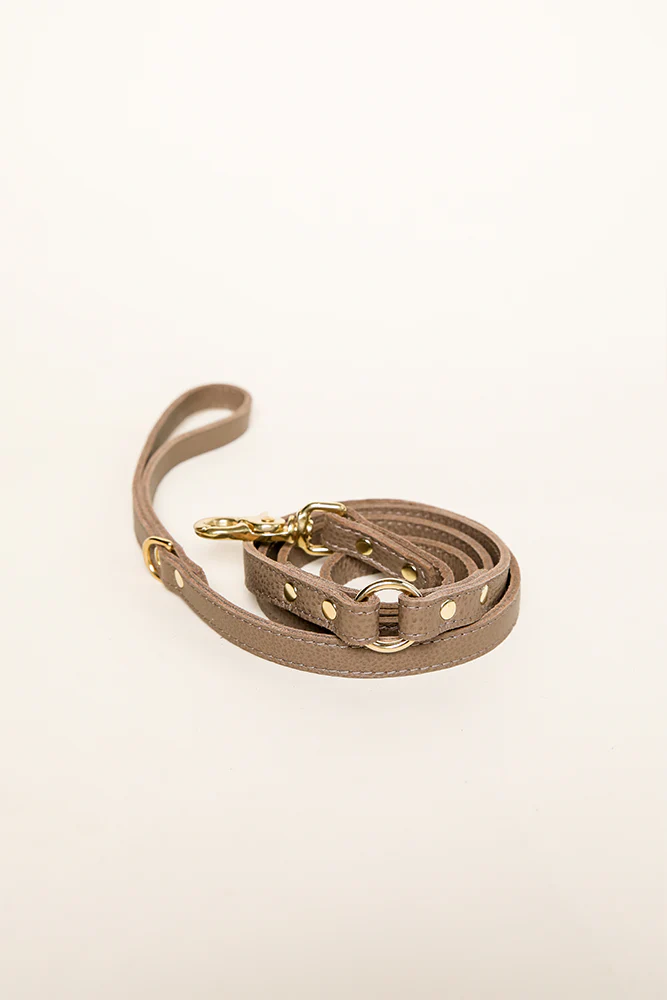 De hondenlijn Royal Taupe is gemaakt van echt kwaliteitsleer. De gouden details zorgen ervoor dat deze hondenlijn een echte eye-catcher is voor jouw Doodle.