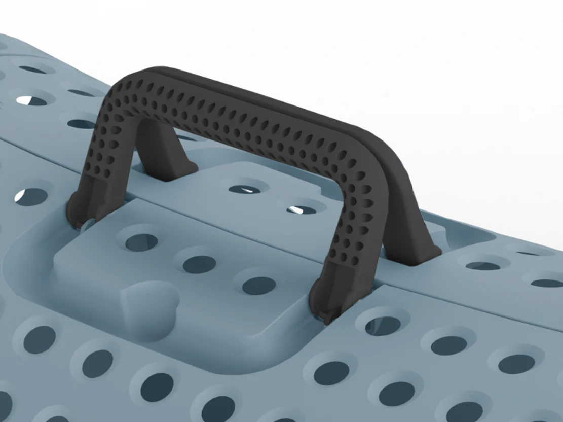 De reismand is gemaakt van speciaal kunststof dat niet giftig is en is voorzien van handvaten die mooi in de vorm wegvallen. De box blijft altijd stabiel staan door de vier pootjes. Bovendien is de box voorzien van een handig klik systeem, waardoor je de onder- en bovenkant makkelijk kan monteren en demonteren.