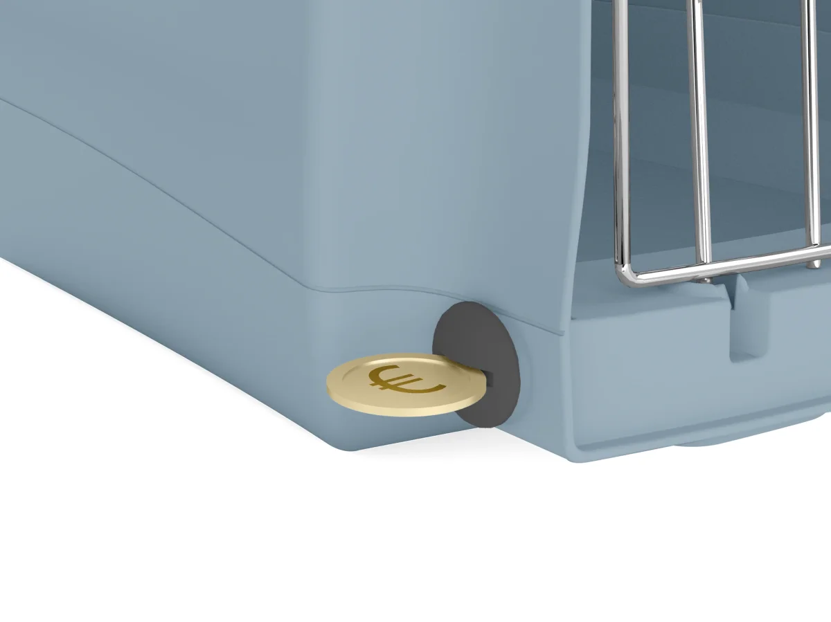 Imac Reismand Linus Cabrio 2nd Life Gerecycled Lichtblauw 50X32X34,5 cm is een moderne transportbox voor de hond of kat van sterk, gerecycled plastic, met veel ventilatie en ijzeren traliedeur.