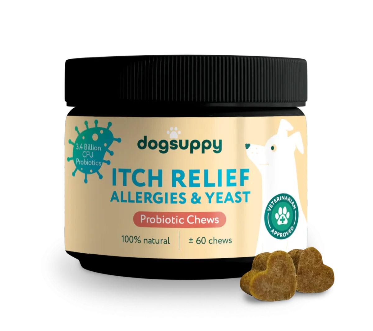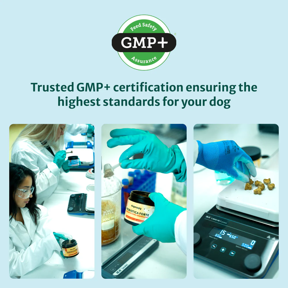 83% of customers see positive results within 6 weeks. We have chews that contain no meat and chews that contain meat (chicken). All of our products are free from gluten and grain. Developed by experienced nutritionists in a GMP+ certified environment. Try it today with free shipping and a 60-day money-back guarantee.