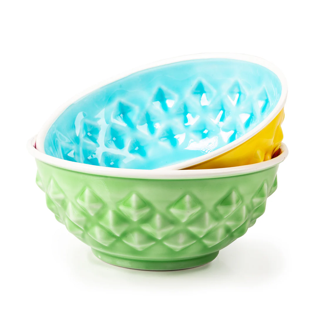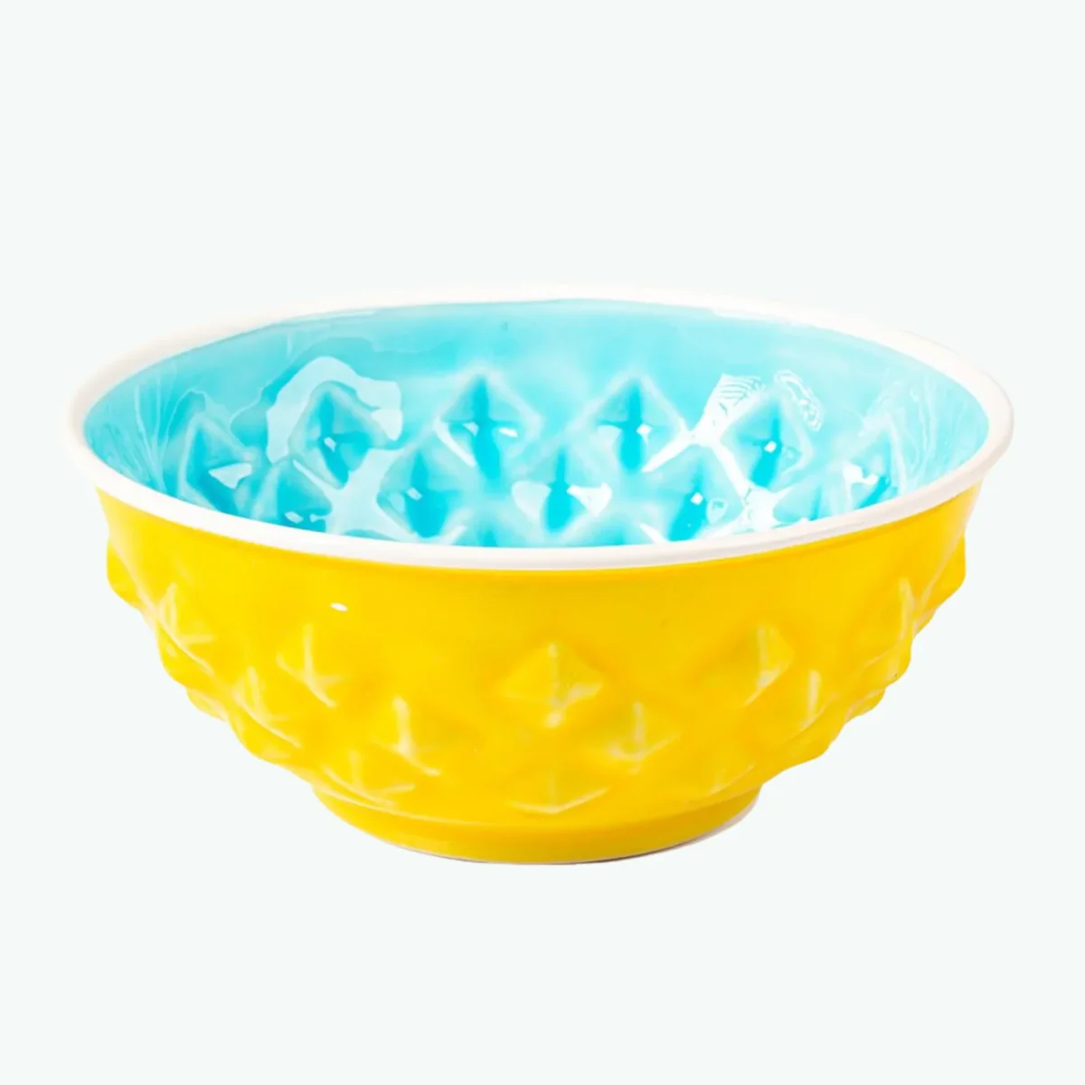Dit kleurrijke voederbakje is een versiering in elke keuken. Door de mooie kleurencombinatie van blauw met geel past het bij iedere hond en maaltijd.