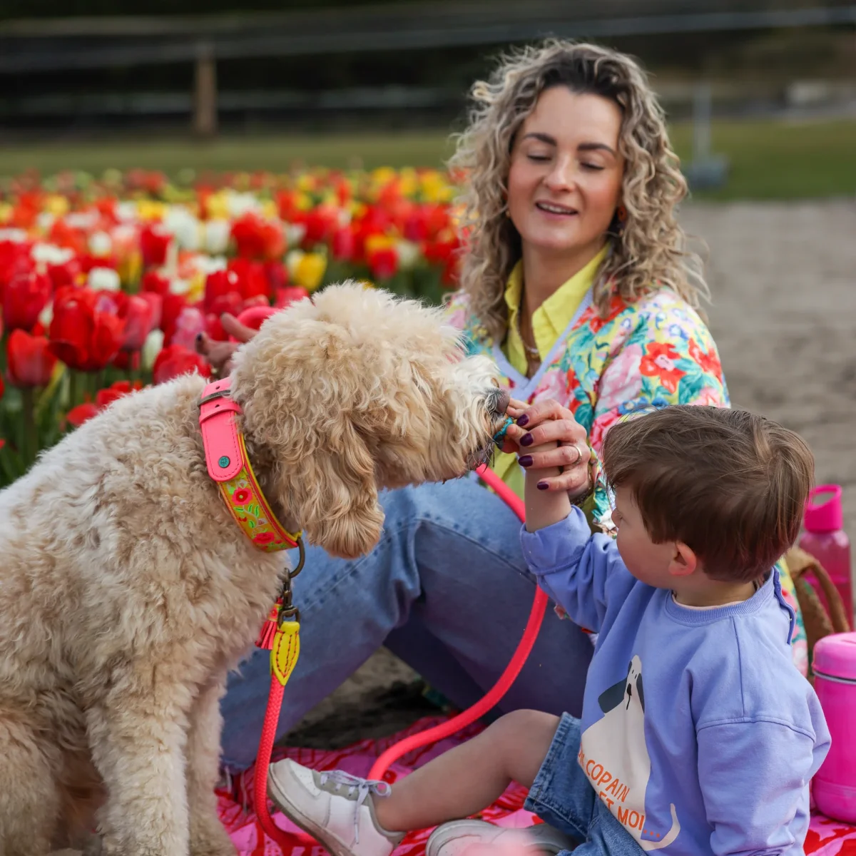 Match je Lotus halsband met de bijpassende riem en geef elke wandeling een kleurrijke upgrade. De Lotus hondenriem combineert stevigheid met stijl en heeft die vrolijke boho-uitstraling waar je meteen blij van wordt.