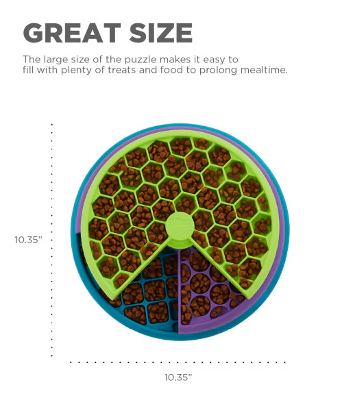 Lickin’ Layers biedt meer dan 100 vakjes om snacks of voer in te verstoppen. Dit helpt de eet-snelheid van je hond te vertragen.