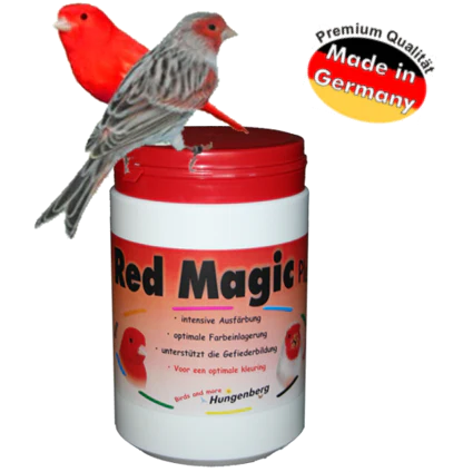 Red Magic Plus is een hoogwaardig rood pigment, speciaal ontwikkeld voor kleurkanaries en andere vogels waarbij een intensieve rode kleuring gewenst is. De formule van Birdsandmore Hungenberg combineert krachtige kleurstoffen met voedingsstoffen die essentieel zijn voor de vorming van nieuwe veren.
