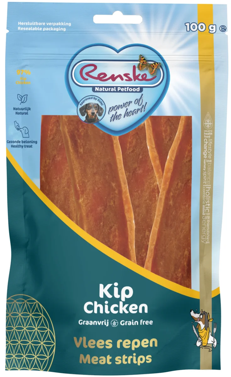 Renske Gezonde Beloning vleesrepen is aanvullende diervoeding voor jouw hond. De repen zijn een goede aanvulling op het dagelijkse menu, omdat deze voorzien in de natuurlijke kauwbehoefte van jouw hond.
