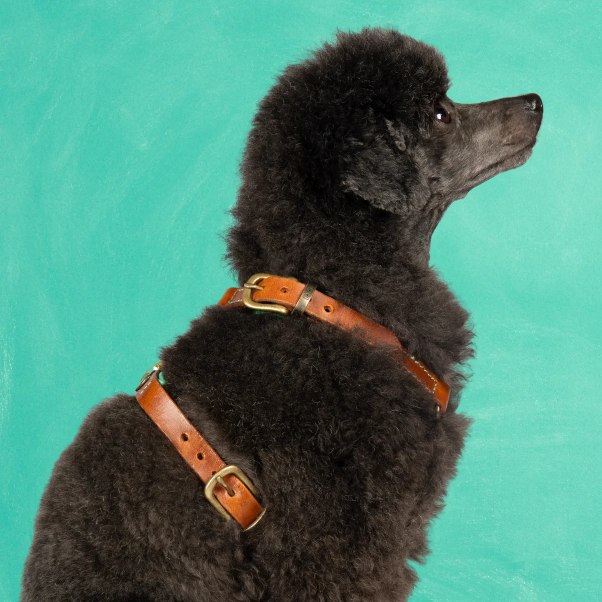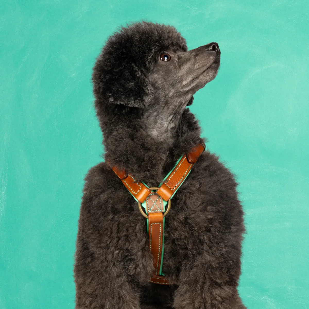 Het stoere Rock tuigje uit de Urban collectie is gemaakt voor de wildste avonturen. Sterk bruin leer van buiten, zacht DWAM turquoise leer van binnen. Stoer van buiten, zacht van binnen, net als jouw hond. En om hem compleet te maken is hij afgemaakt met gouden details, want jouw hond verdient niets minder.