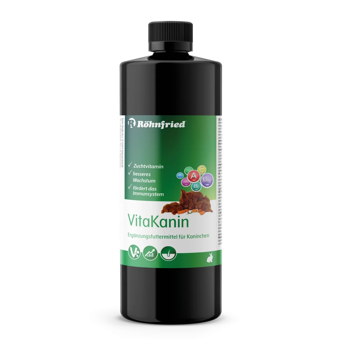 VitaKanin is een vloeibaar vitaminepreparaat dat optimaal is afgestemd op de specifieke behoeften van konijnen. Het is ontwikkeld om tekorten aan te vullen en om het dier extra ondersteuning te bieden in stressvolle periodes, zoals tijdens of na tentoonstellingen. Dankzij de zorgvuldig samengestelde formule krijgen konijnen in alle levensfasen de vitamines binnen die essentieel zijn voor een gezonde groei, een goede vachtwisseling, een sterk immuunsysteem en succesvolle fok.