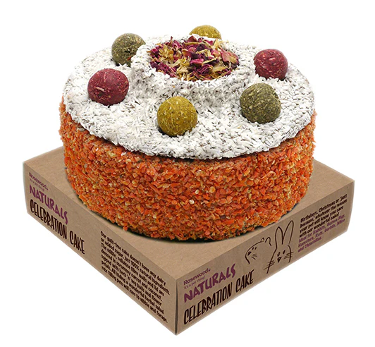 De Rosewood Naturals Verjaardagstaart is een zeer leuke gezonde traktatie voor konijn en knaagdier met gedroogde bloemen, wortel en kokos. Deze heerlijke beloning voor konijn en knaagdieren is gemaakt in de vorm van een taart met een los deksel. De hele taart is gemaakt van eetbaar materiaal, bestrooid met wortel en kokos. Bovenop zijn leuke balletjes van kruiden en groenten geplaatst en in het midden vind je een lekkere mix van bloemblaadjes. En dat is nog niet alles, want binnenin de taart is een heerlijke salade van kruiden verwerkt. Deze leuke, gezonde taart biedt dus voor ieder wat wils en is de perfecte beloning voor jouw konijn, cavia, rat, gerbil, muis of chinchilla.