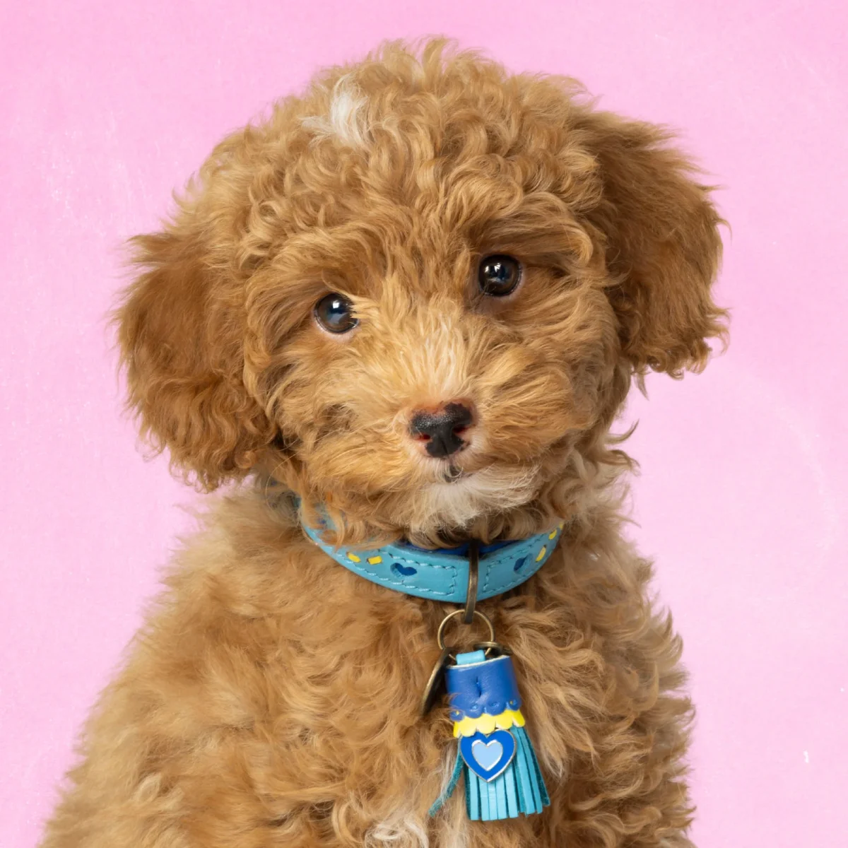 De Sky halsband geeft elke hond een speelse en frisse look met haar vrolijke hartjes en charmante details. Deze handgemaakte halsband in maat XXS (halsomvang 22-24 cm, breedte 2 cm) is gemaakt van lichtblauw buffelleer met een speels hartjesdesign en gele handgestikte details. De combinatie van lichtblauw leer met hartjes en gele stiksels maakt deze halsband een echte eyecatcher. Perfect voor kleine honden die opvallen met een rustige, elegante look.