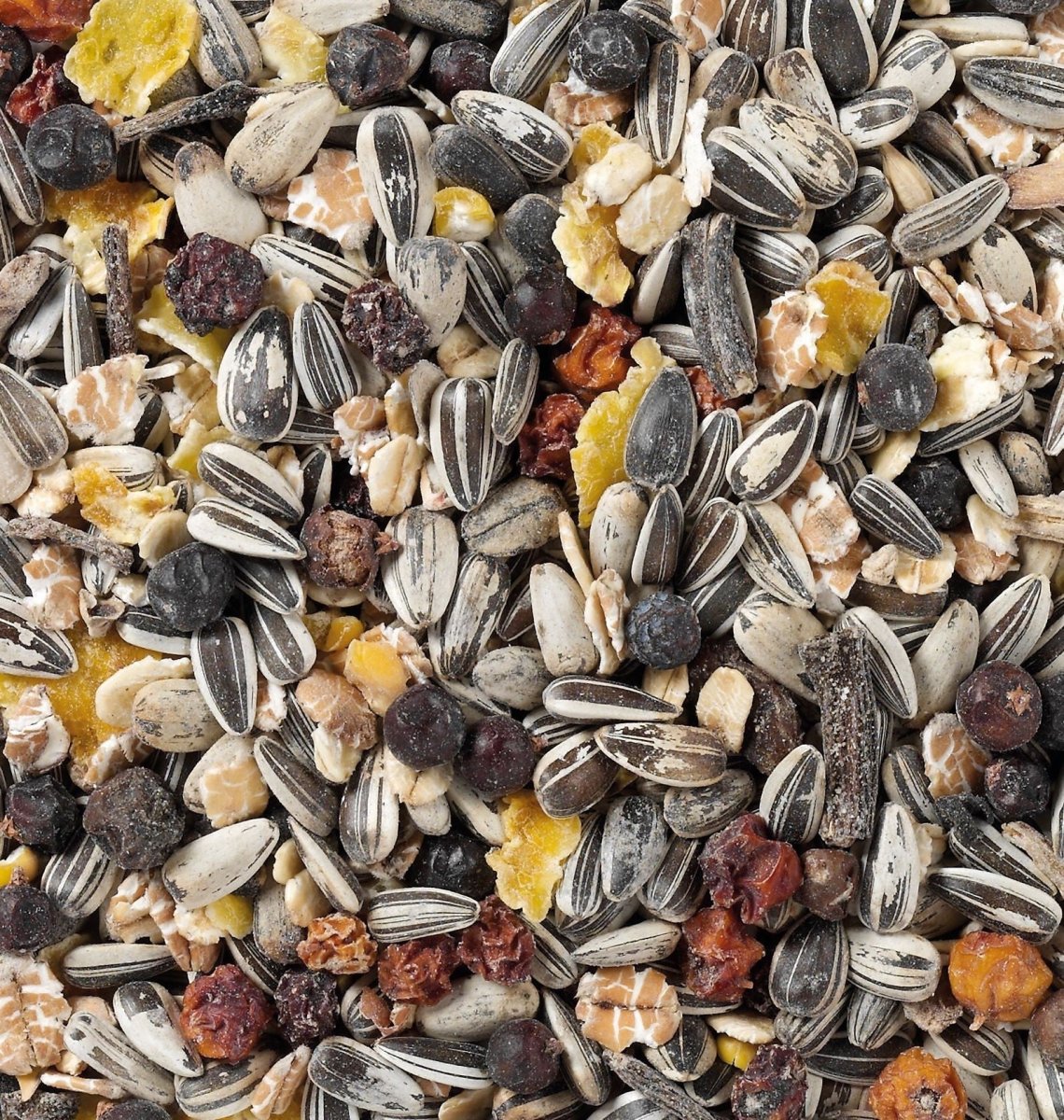 Een gevarieerde en luxe mengeling, verrijkt met bessen en stukjes fruit, speciaal om buitenvogels extra te verwennen.