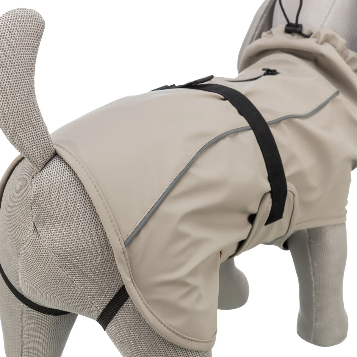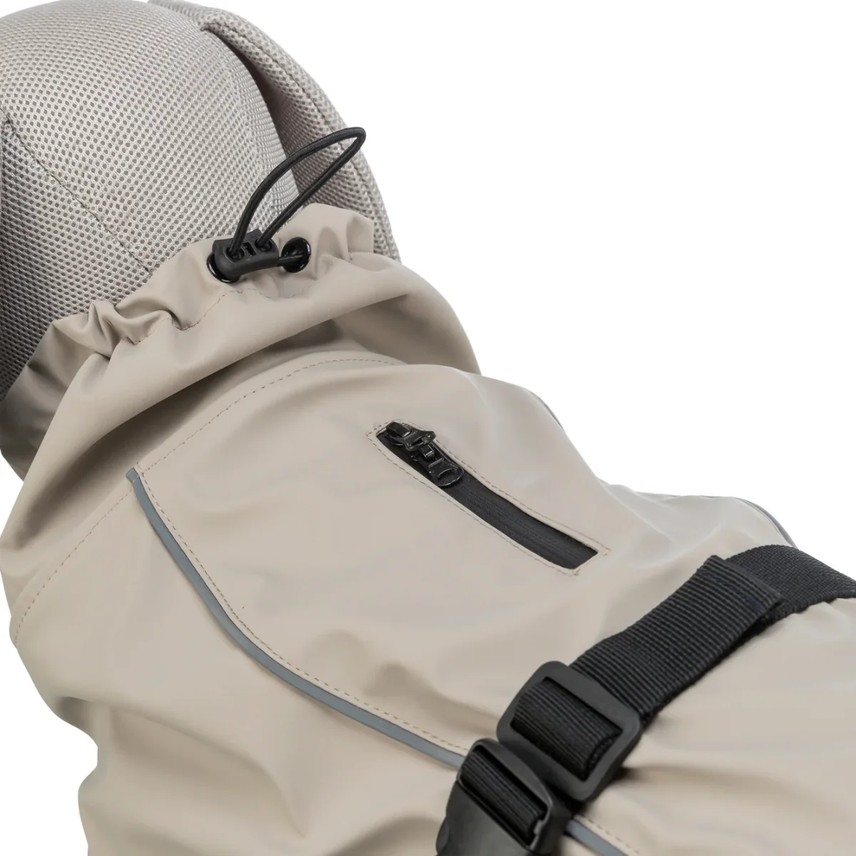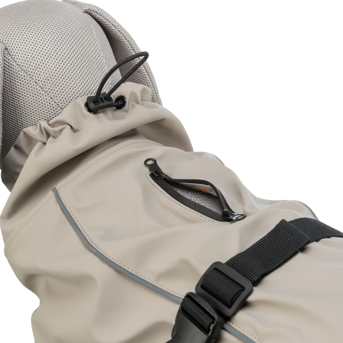 – Met waterdichte rits voor het aanlijnen aan een tuig