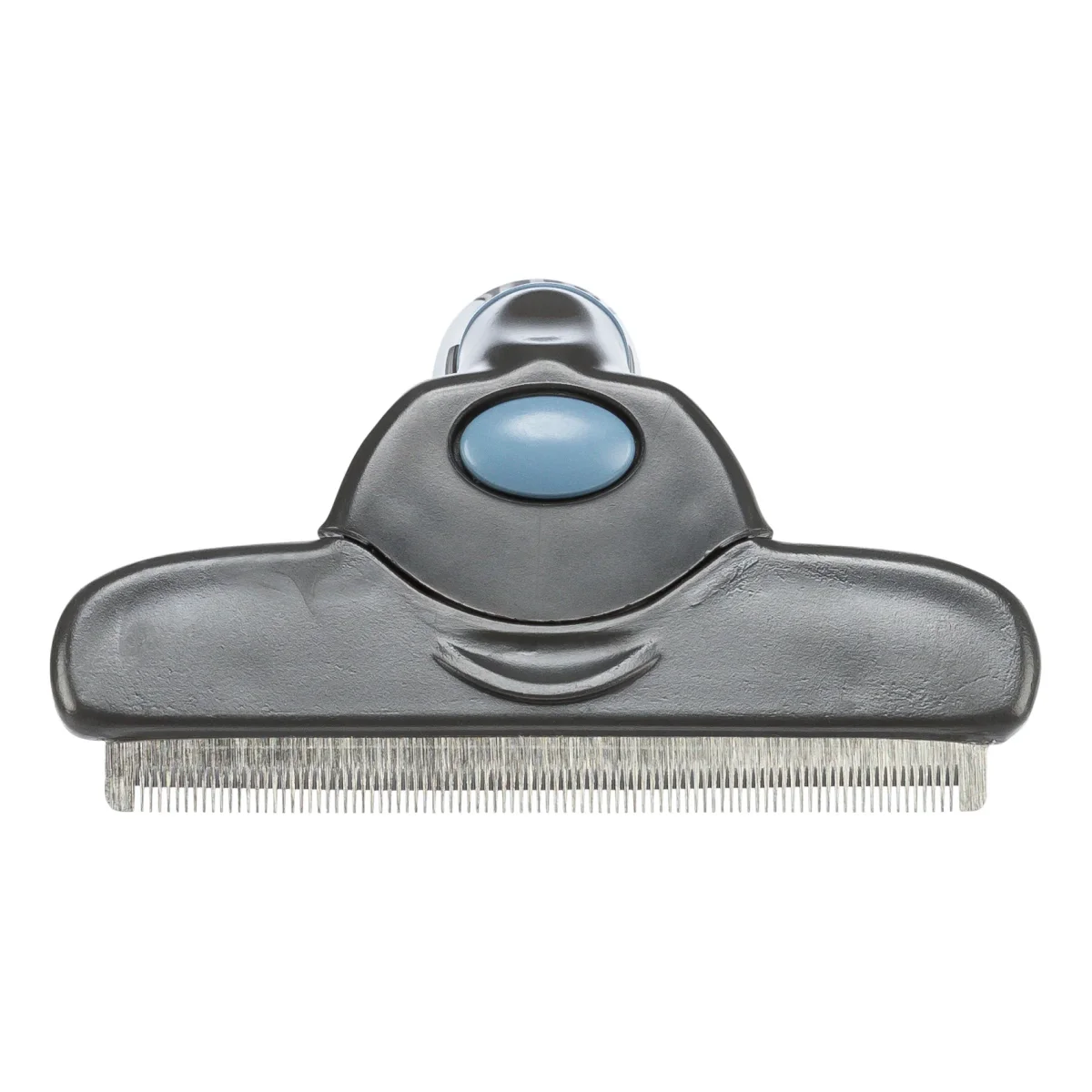 Heeft jouw hond een erg dikke vacht, last van vervilting of veel losse haren in de ondervacht die in de vacht blijven steken? Dan is deze Trixie Carding vachtkam ideaal. Deze handige hondenkam verwijdert moeiteloos overtollig haar uit de onderwol. Ook is hij bijzonder geschikt voor het eenvoudig ontvilten en uitdunnen van de vacht. Je kunt de opzetstukken makkelijk wisselen door middel van het klikmechanisme aan het handvat, dat is uitgevoerd met een slipvaste rubberen coating. Zo is het comfortabel kammen voor zowel jou en je hond, of je paard, want ook daarvoor is deze kam geschikt!