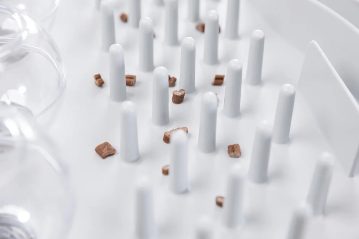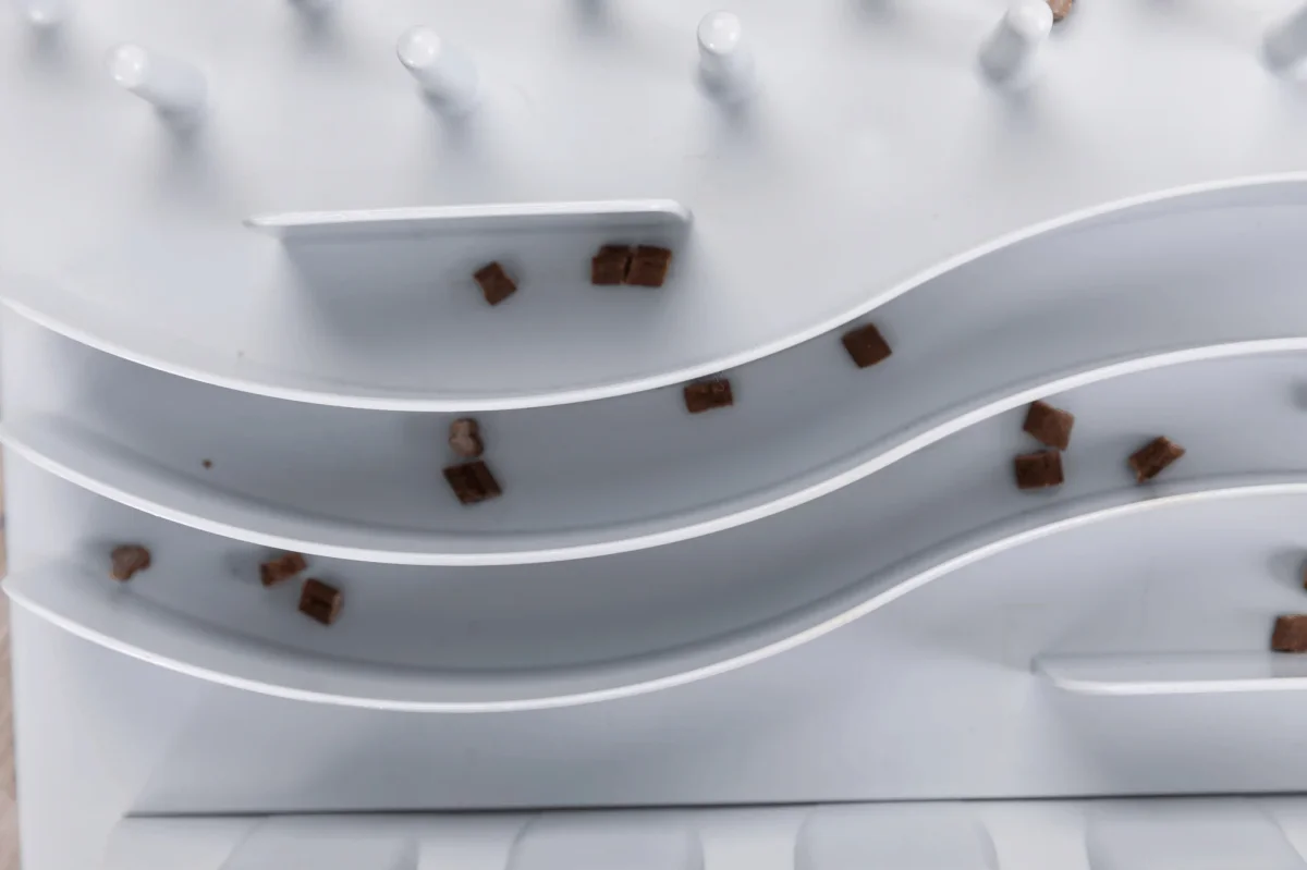 – Voorkomt schrokken doordat je kat langer bezig is met zijn eten te pakken krijgen