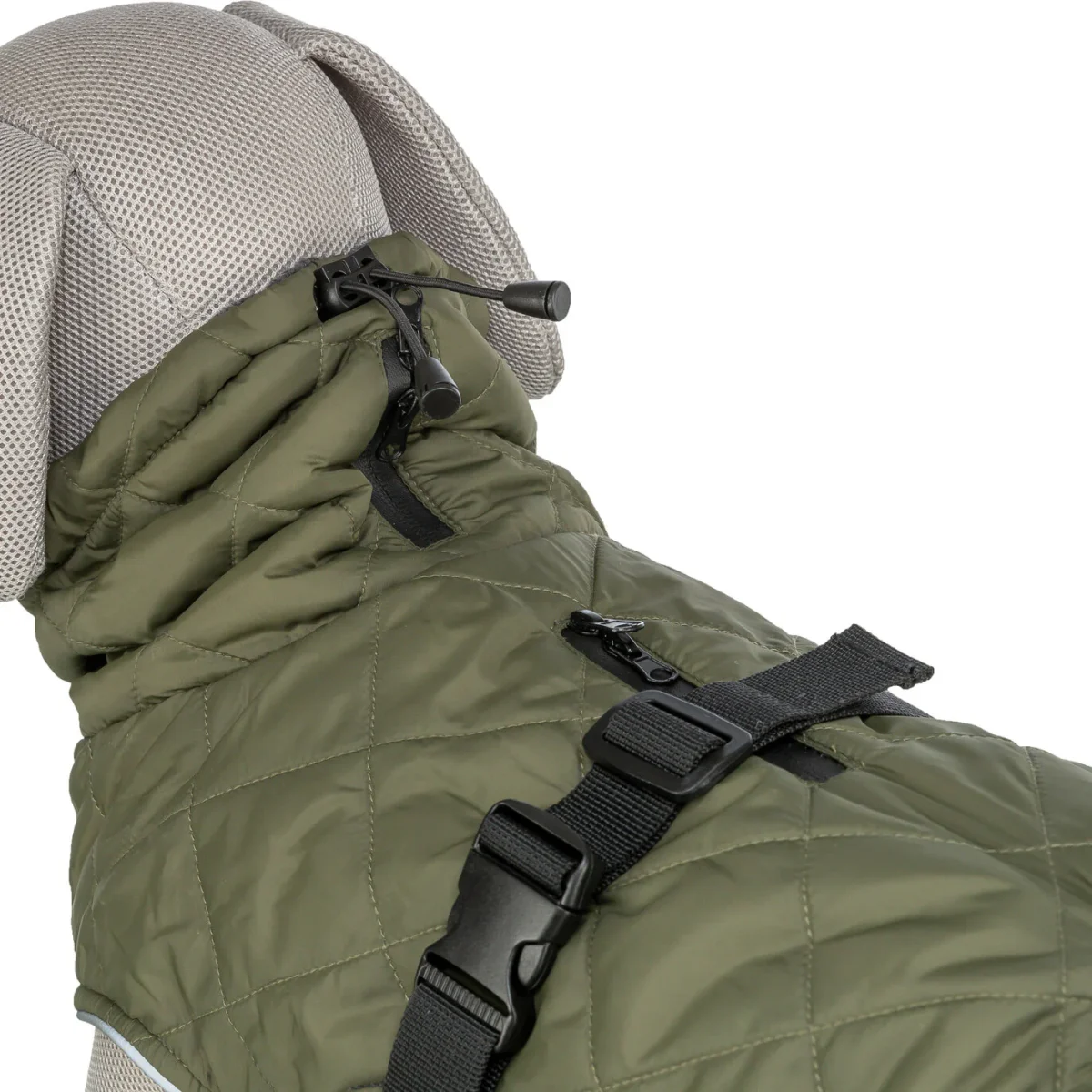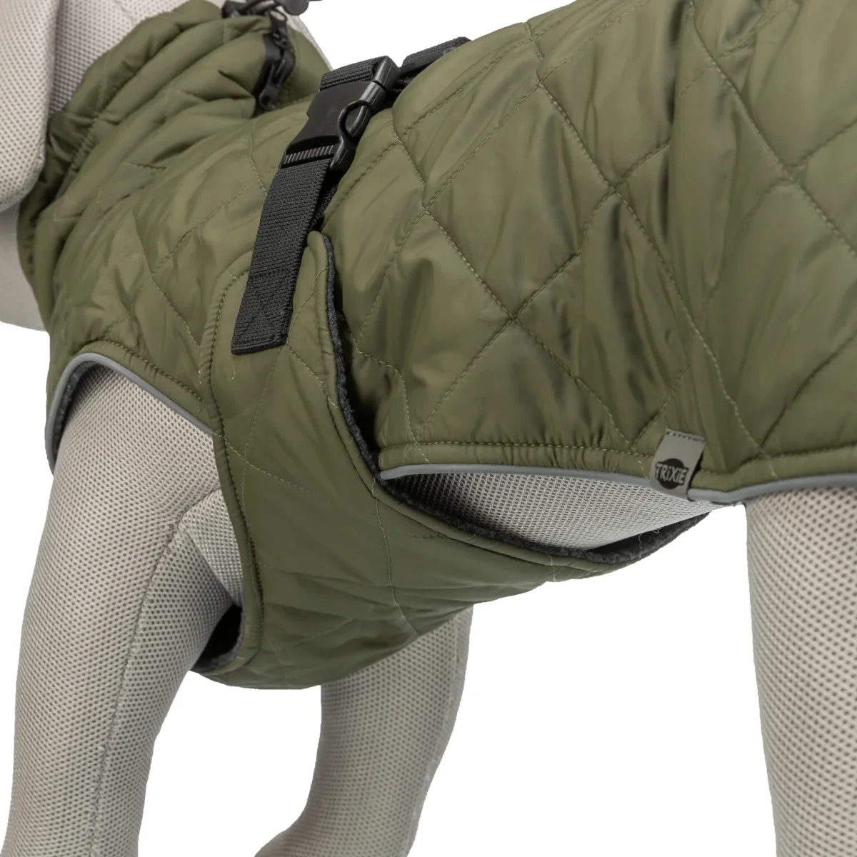 De Trixie Hondenjas Minot Olijfgroen is een comfortabele en praktische jas die jouw hond beschermt tegen kou, wind en nattigheid. Gemaakt van polyester en voorzien van een zachte fleece voering en lichte wattering, biedt deze jas warmte en draagcomfort. Dankzij twee waterdichte ritssluitingen is de jas eenvoudig te combineren met zowel een halsband als een tuig. Reflecterende elementen zorgen voor extra zichtbaarheid in het donker. De pasvorm is volledig aanpasbaar met trekkoorden in het nek- en ruggedeelte, een verstelbare buikriem met gesp en verstelbare beenlussen voor de achterpoten. Bovendien is deze jas getest en goedgekeurd door een onafhankelijk gespecialiseerd instituut voor dierenwelzijn en dierenbescherming.