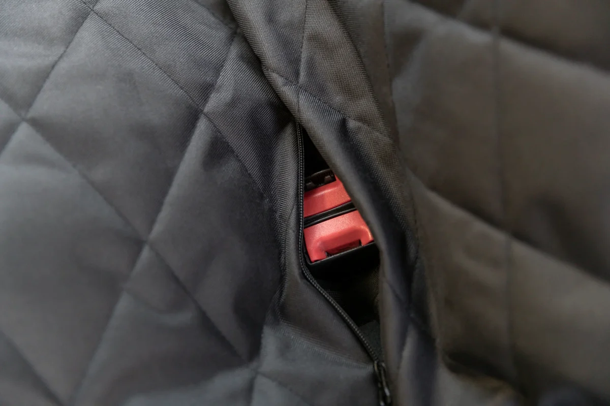 De vulling van de stoel is uitneembaar en de hoes kan op de hand gewassen worden. De stoel is eenvoudig en snel uit de auto te halen wanneer deze niet in gebruik is.