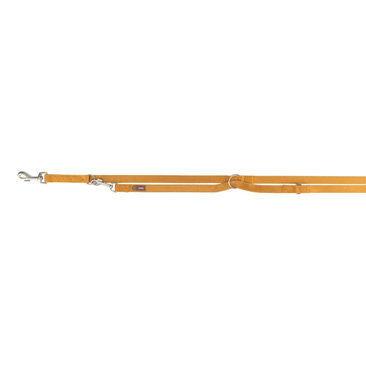 De Trixie Hondenriem Premium Verstelbaar curry geel 200X1 cm is een handige, verstelbare riem om de hond uit te laten. Met de Premium Verstelbare Riem heb je de perfecte riem voor dagelijks gebruik! Deze riem is gemaakt van singelband en biedt een comfortabele grip tijdens het wandelen. De riem is voorzien van een oogje om bijvoorbeeld de hondenpenning of een flasher aan te bevestigen. Dankzij de drievoudig verstelbare functie kun je de lengte van de riem eenvoudig aanpassen aan jouw behoeften. Of je nu een korte leiband nodig hebt voor de stad of een lange lijn voor in het park of bos, met de Premium Verstelbare Riem heb je alles binnen handbereik!