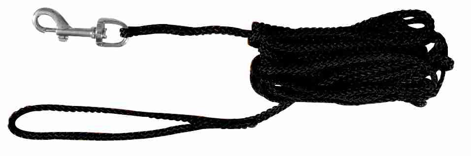 De Trixie Hondenriem Sleeplijn Zwart 5 mtr x 0,5 cm is een lange lijn voor de hond, gemaakt van rondgeweven touw met handvat. Het touw drijft en is daardoor ook geschikt bij zwemmen en strandwandelingen. Het is voorzien van een handvat en een musketonhaak om het touw aan de halsband of het tuig vast te klikken.