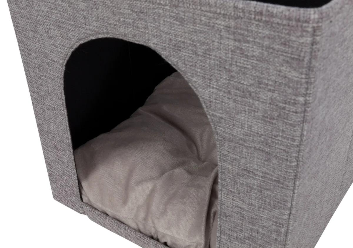 Door het stevige polyester is dit huisje vormvast en isolerend. Het huisje is uitgevoerd in grijze geweven stof. Een aanwinst voor zowel jou als je kat!