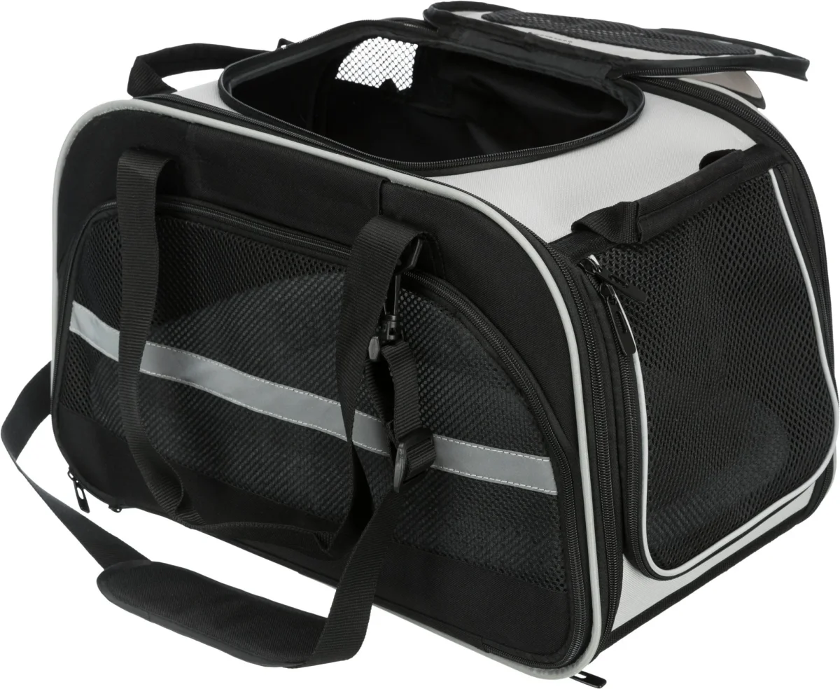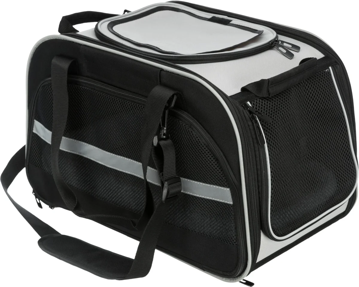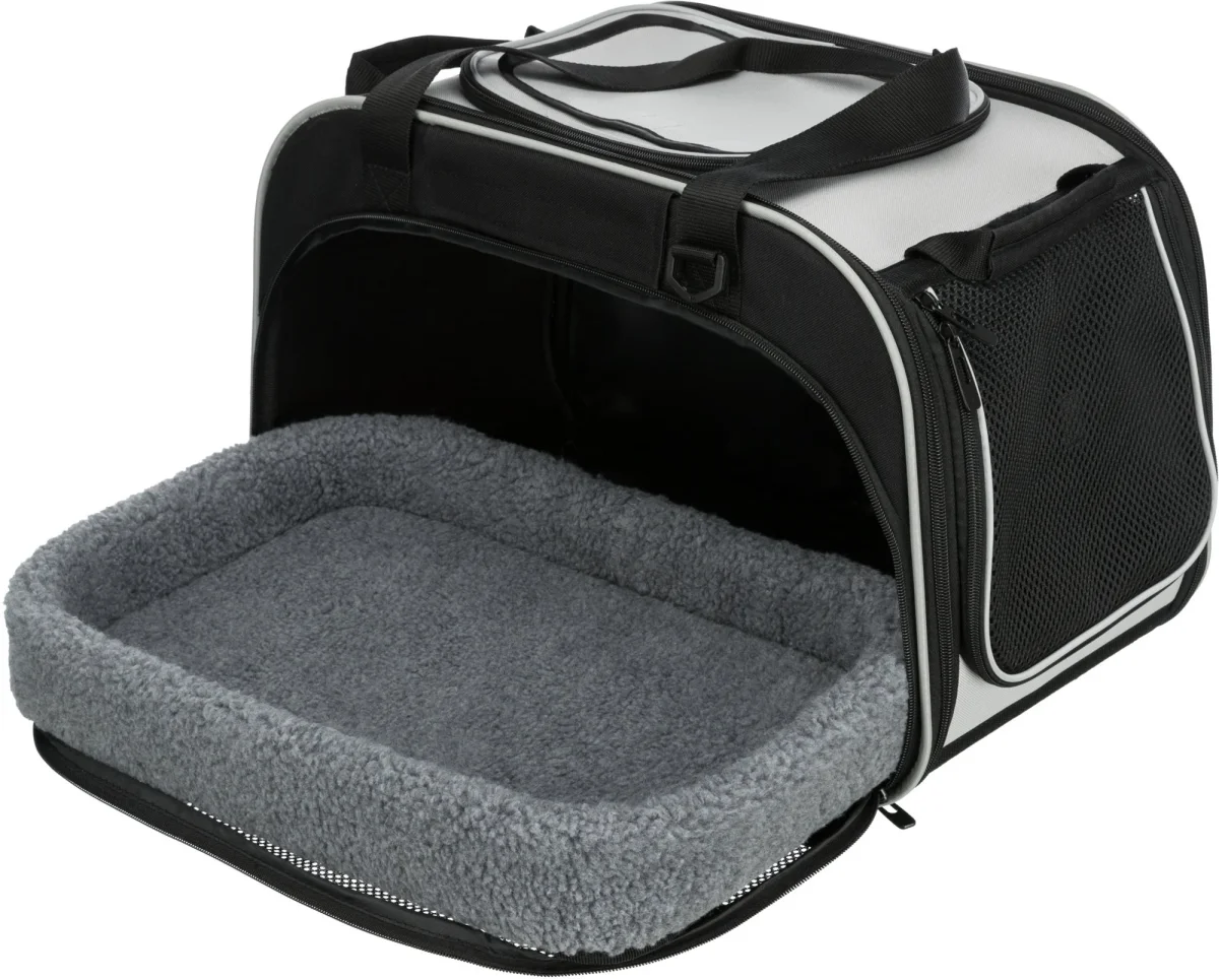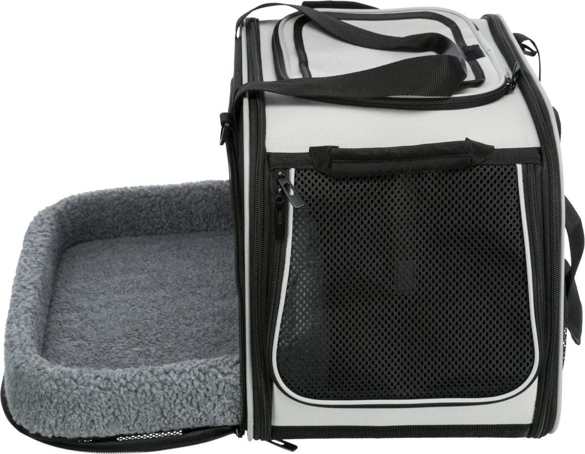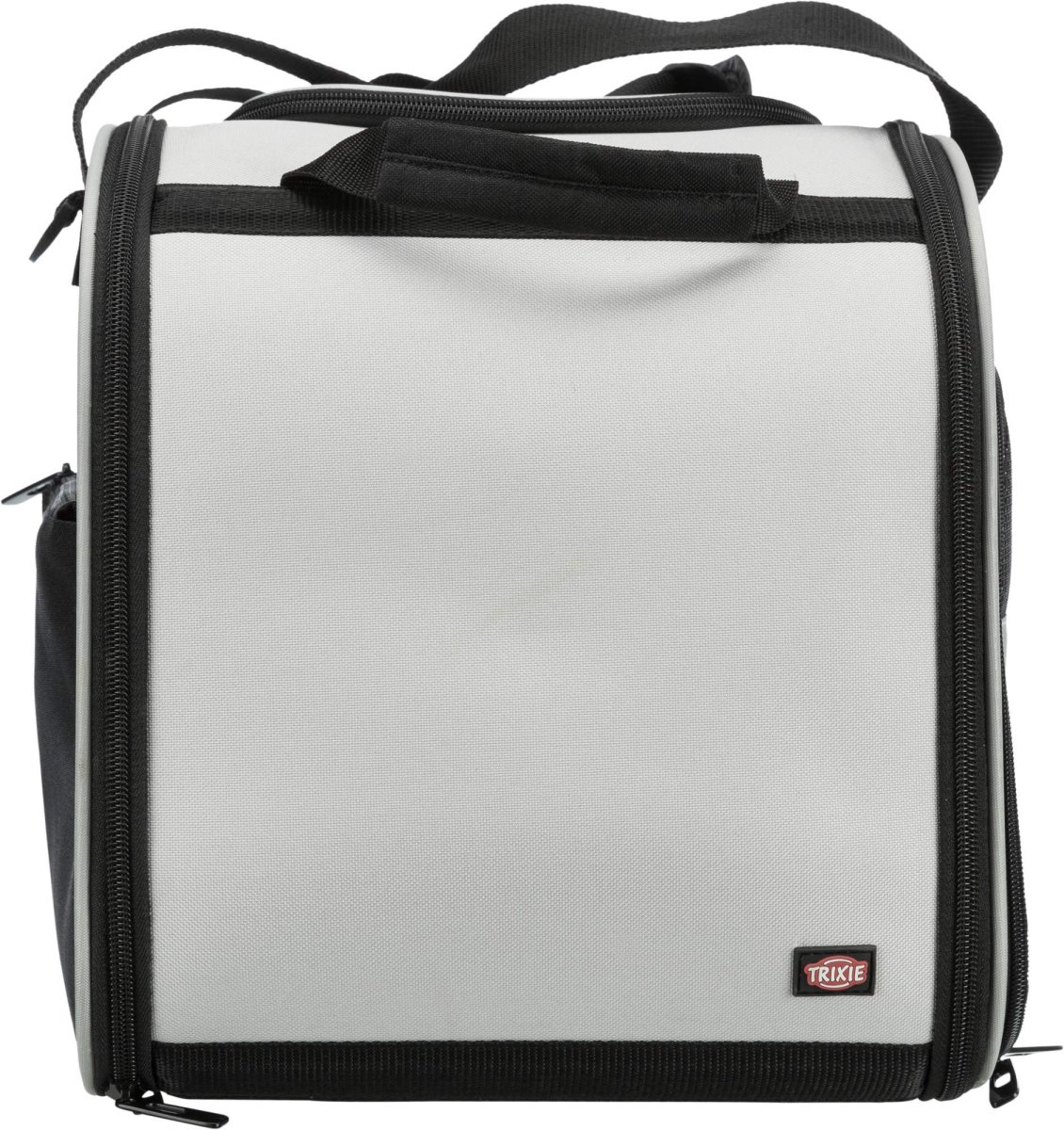 Trixie Kattentas Valery Zwart / Grijs 49X29X31 cm is een draagtas voor de kat die ook te gebruiken is als schuilplaats, ontwikkeld door dierenartsen. Jouw kat comfortabel mee op pad nemen doe je pas echt met deze kattentas woon- en transporttas Valery van Trixie. Deze tas is ontwikkeld in samenwerking met een in katten gespecialiseerde dierenarts. De tas kan gebruikt worden voor transport, maar ook als schuilplek. De tas is aan de voor- en zijkant te openen en uitgerust met een uittrekbare vormstabiele binnenmand van pluche. De tas is voorzien van vier handgrepen en een schouderriem, die opgeborgen kunnen worden wanneer de tas niet voor transport gebruikt wordt. Gemaakt van vormvast EVA met polyester en met buitenvakken om dingen in op te bergen. Een zeer complete tas, die reizen voor de kat zo comfortabel mogelijk maakt!