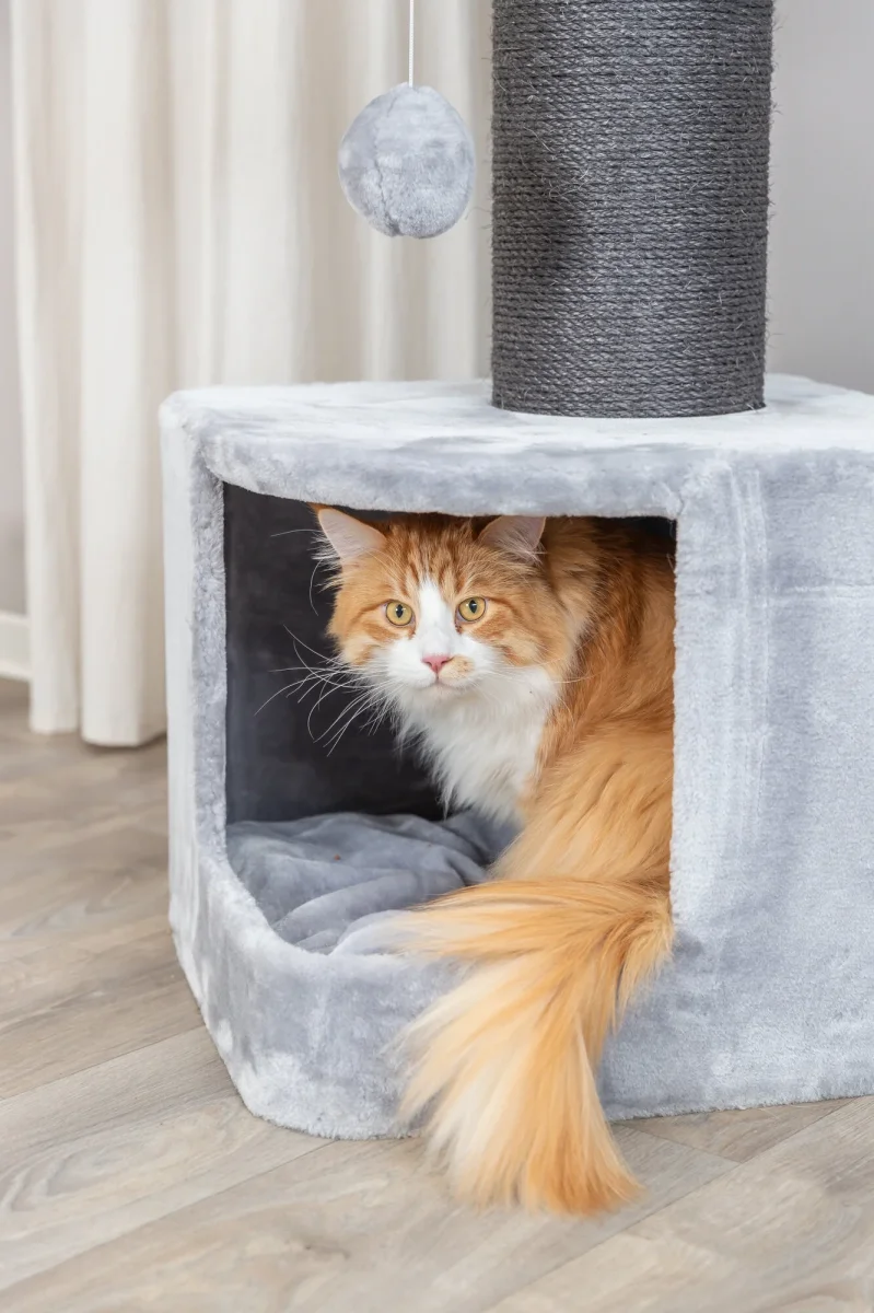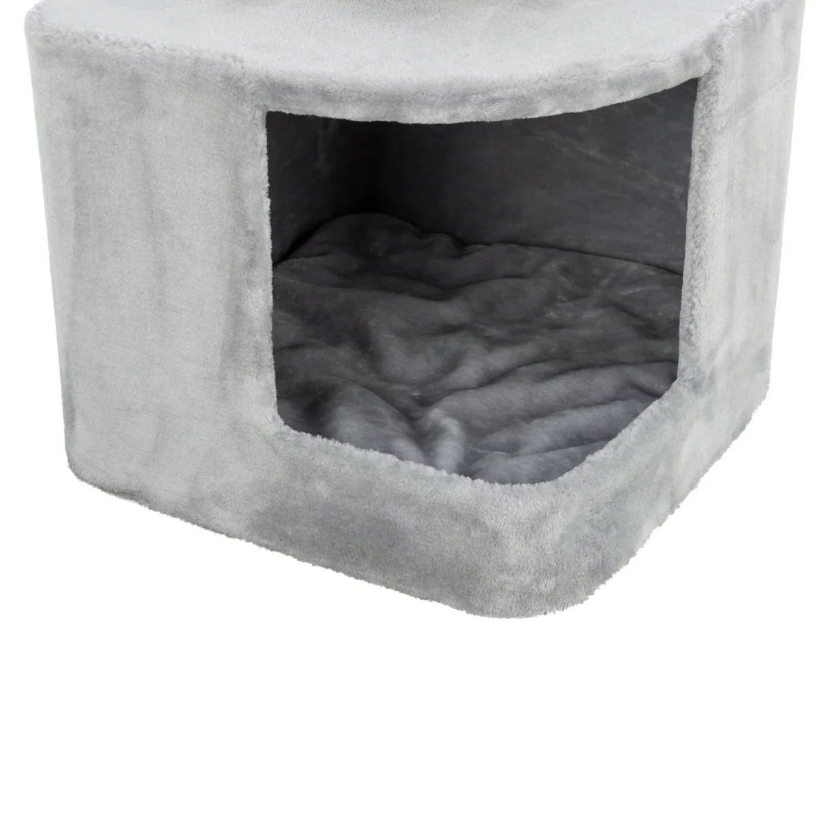 De Trixie Krabpaal Ava II XXL Grijs is een ruime en krabpaal die speciaal is ontworpen voor actieve katten die houden van krabben, spelen en ontspannen. Deze XXL-variant biedt genoeg ruimte en comfort voor katten van verschillende groottes en leeftijden. Gemaakt van sterk sisal (ø 6 mm) en premium pluche (polyester, 400 g/m²) voor een duurzame en comfortabele ervaring. De schuilplaats aan de binnenzijde is volledig bekleed met pluche, waardoor je kat een warme en veilige plek heeft om zich terug te trekken. Voor extra comfort zijn er twee wendbare kussens inbegrepen, die handwasbaar zijn voor eenvoudige reiniging en onderhoud.
