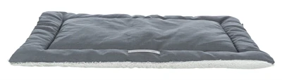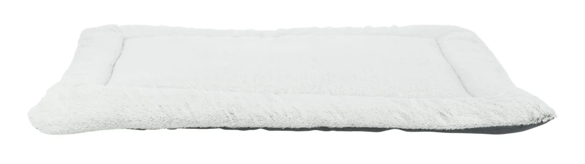 De Trixie Ligmat Farello Wit – Grijs / Grijs van 70 x 55 cm is een platte ligmat voor de hond, met heerlijk zachte polyester en pluche bekleding en 4 cm polyestervlies vulling. Niet alle honden liggen graag op een dik kussen, of hebben liever een plattere ligmat voor onderweg of in de bench. Daar is deze mooie ligmat van Trixie perfect geschikt voor. Deze Farello-mat heeft een 4 cm polyestervlies vulling waardoor hij niet te dik maar toch comfortabel is, ideaal voor honden die niet graag op een heel dik kussen liggen. De ligmat is bekleed met polyester in een mooie geweven stof en heerlijk zacht pluche, zodat jij zelf kunt kiezen welke kant jij het liefste boven wilt. De mat is wasbaar op 40 graden.
