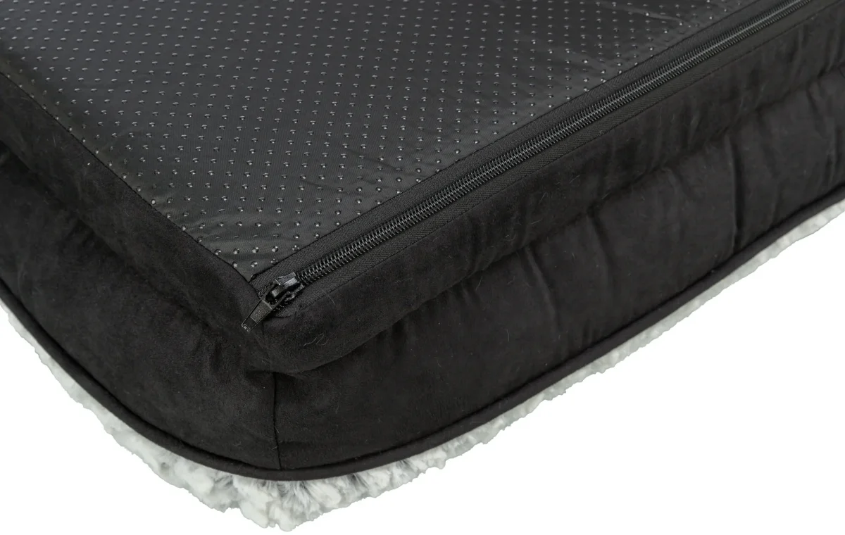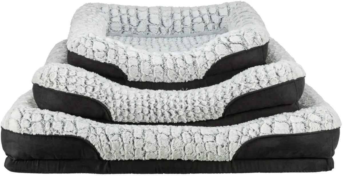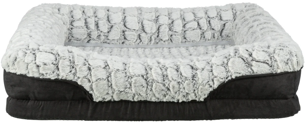 De Trixie Vital Hondenmand Lino Hoekig Zwart/Grijs 110X75 cm is een orthopedisch kussen voor maximaal slaapcomfort. Deze stijlvolle mand is niet alleen erg mooi, maar ook nog eens super comfortabel! De orthopedische mand zorgt voor een optimaal ligcomfort. De hoes van velours en zacht pluche heeft een mooi patroon, is verwijderbaar en te wassen op 40 graden Celsius. De mand is gevuld met een visco-elastische schuimachtige vulling met memory effect. De onderkant is voorzien van een antislip-laag, waardoor de mand niet verschuift tijdens het in- en uitstappen.