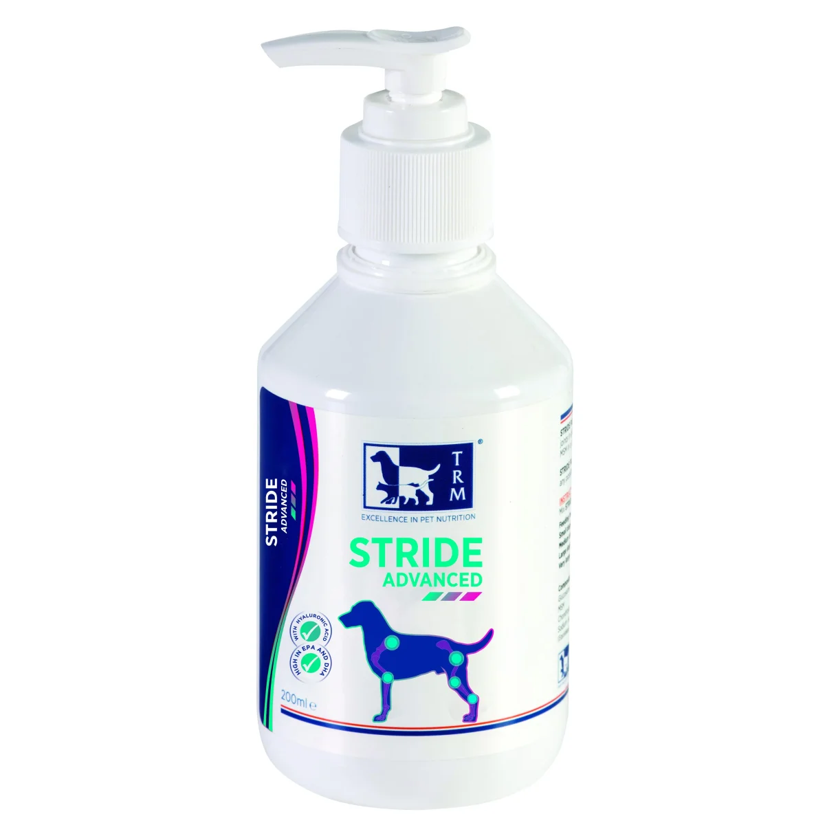 TRM Stride Advanced is een aanvullend diervoeder voor honden, speciaal ontwikkeld ter ondersteuning van het gewrichtsmetabolisme. Het bevat een combinatie van glucosamine HCL, MSM, gefermenteerd chondroïtine, hyaluronzuur en algenolie met een hoge concentratie EPA en DHA.