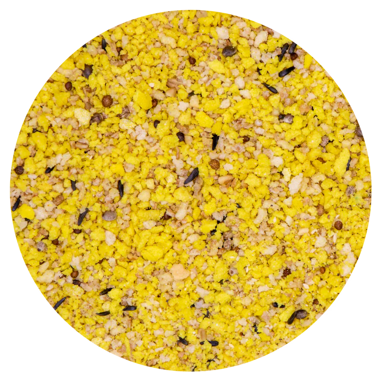 Samenstelling: ei en eiproducten, bakkerijproducten, suikers, zaden, plantaardige eiwitextracten, oliën en vetten, mineralen