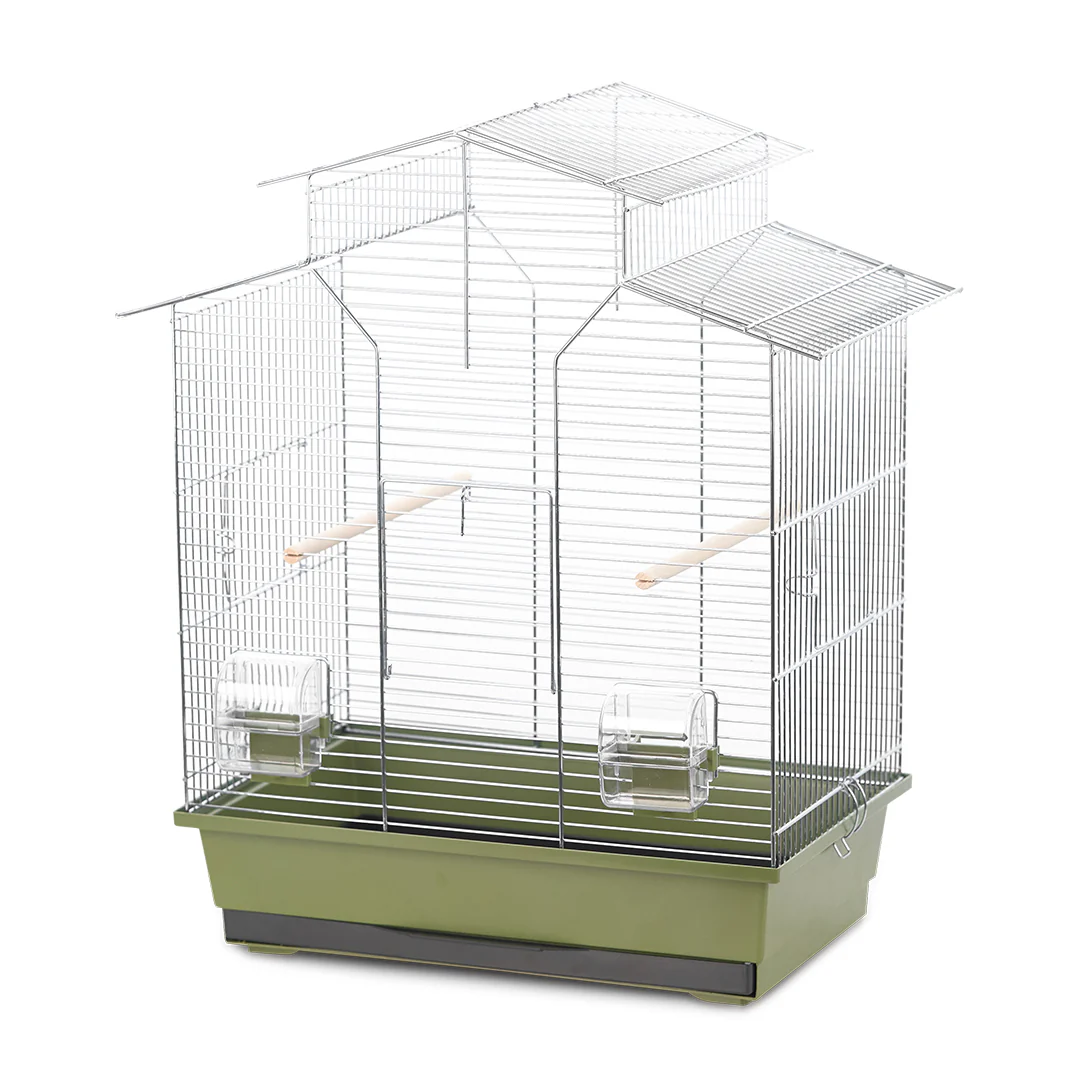 De Iza 2 van Duvoplus is een kwalitatieve vogelkooi in een natuurlijke olijfgroene kleur, ideaal voor vogels zoals agaporniden, kanaries, grasparkieten en tropische soorten. De kooi is vervaardigd uit gegalvaniseerde, roestvrije draad en biedt een veilige en comfortabele leefomgeving.
