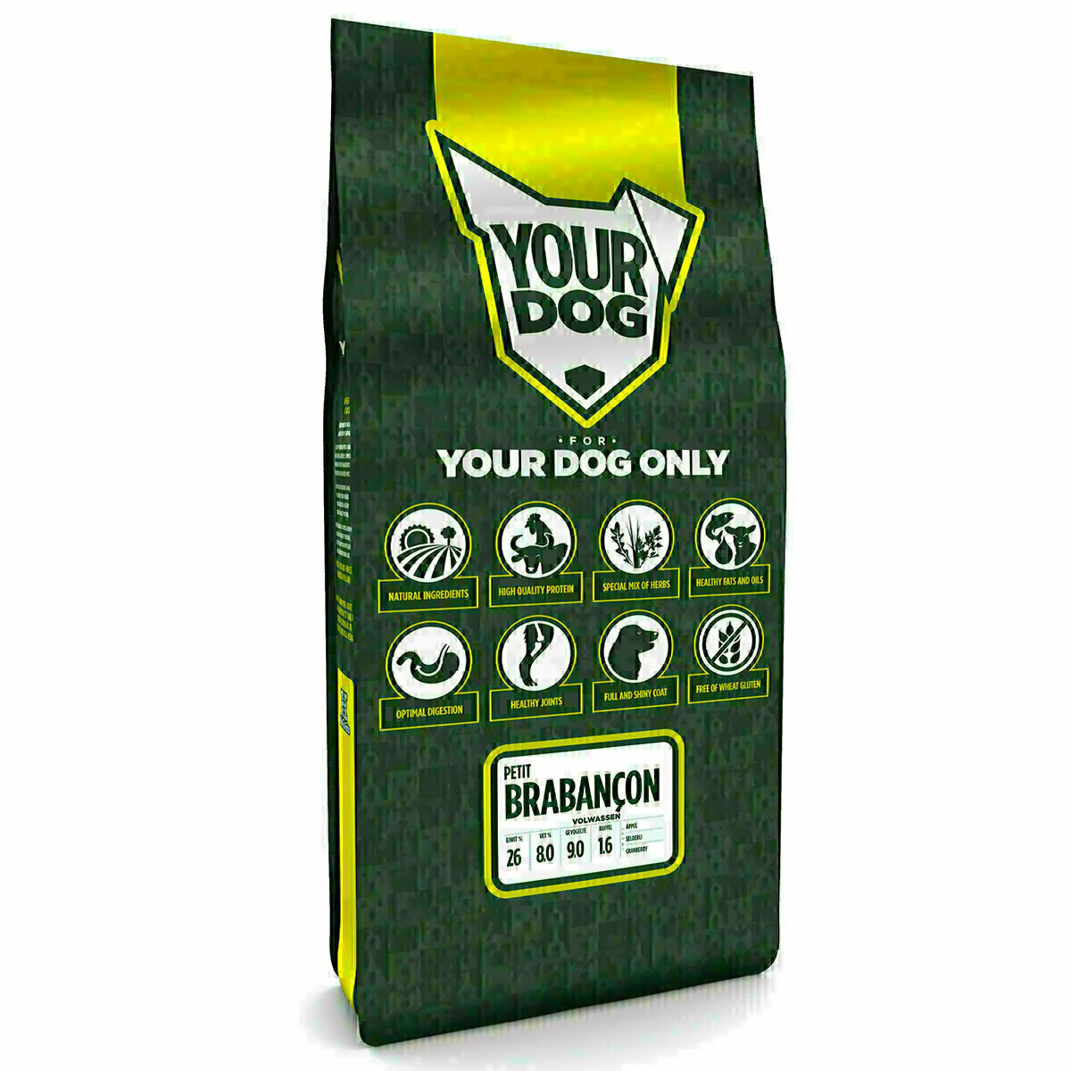 Yourdog Petit brabançon zorgt voor de holistische gezondheid en het welzijn van jouw hond. Alle Yourdog varianten bevatten smaakvolle buffel en kip. Wij combineren dit met zorgvuldig geselecteerde groenten, fruit en kruiden om zo te komen tot de perfecte voeding voor jouw Petit brabançon.